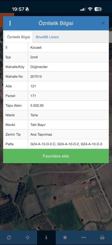 İzmit Düğmeciler Satılık Tarla