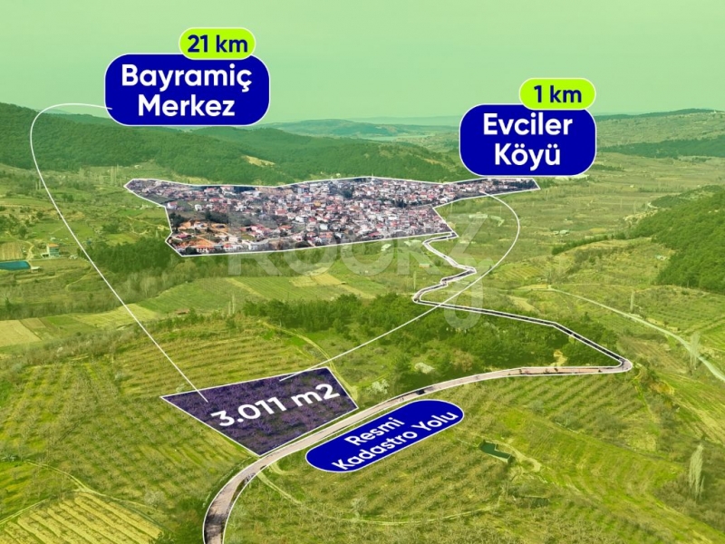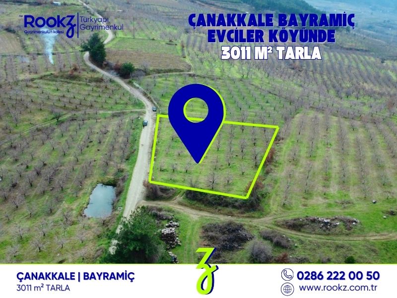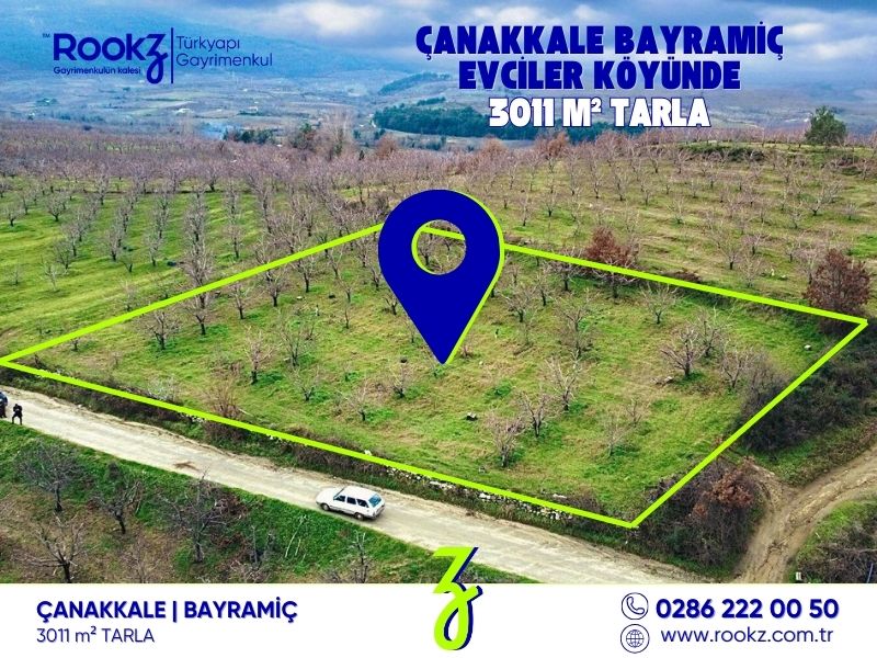 ÇANAKKALE BAYRAMİÇ EVCİLER KÖYÜNDE 3011 M2 TARLA VASFINDA SATILIK ELMA BAHÇESİ
