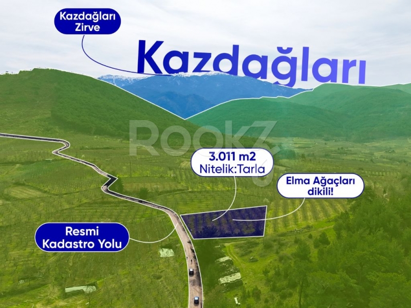 ÇANAKKALE BAYRAMİÇ EVCİLER'DE SATILIK 3011 M2 ELMA BAHÇESİ