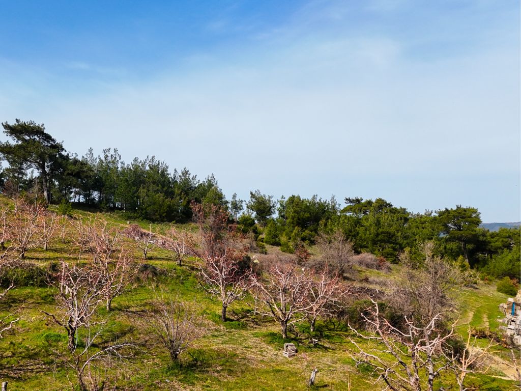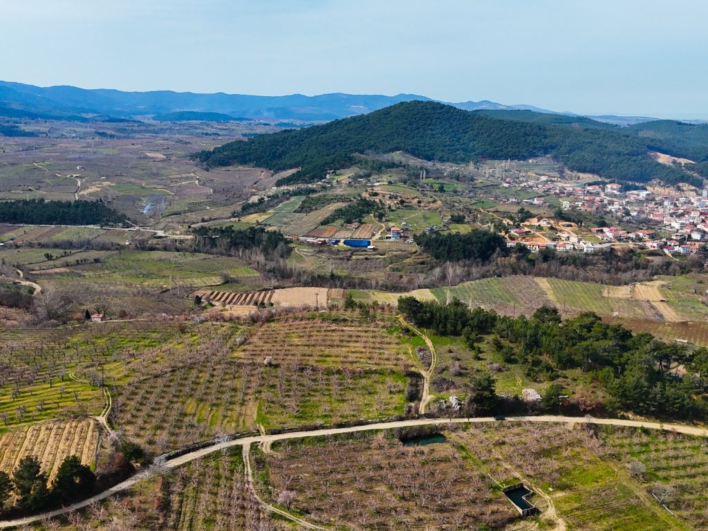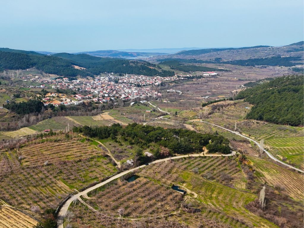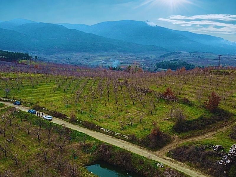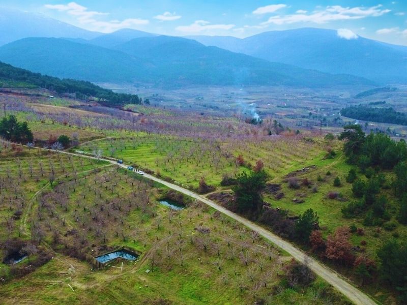Arazimiz köy merkezine yaklaşık 900 metre mesafede ve kadastral yolu bulunmaktadır,araç ile bahçenin içerisine kadar gidilmektedir.