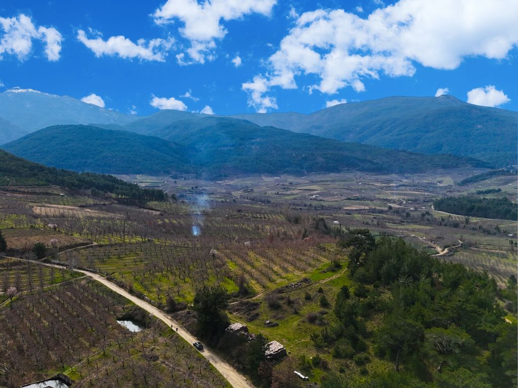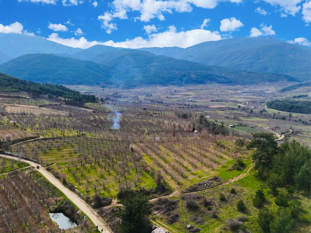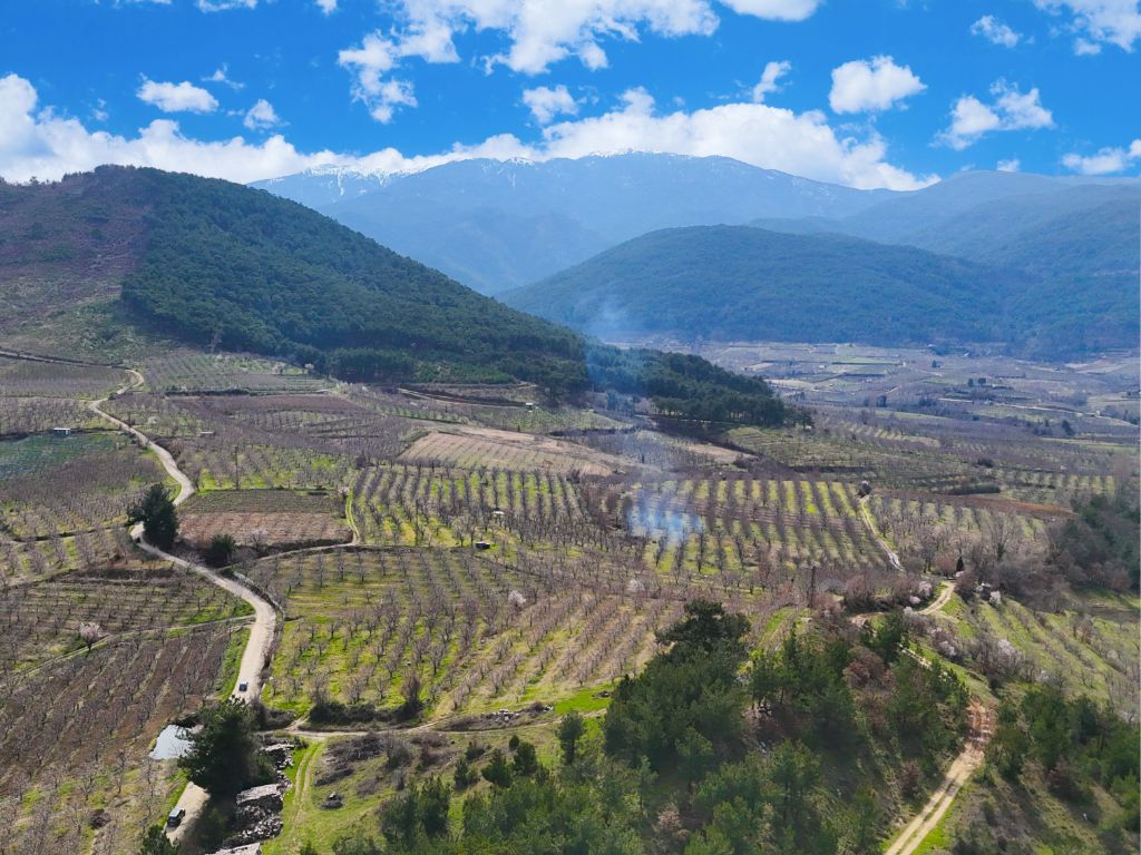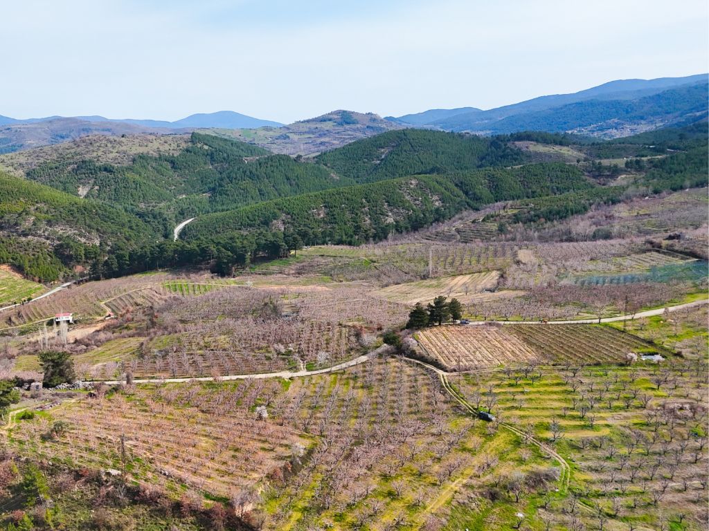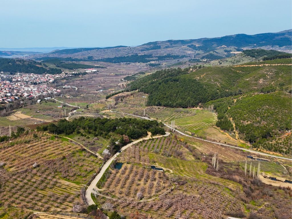 Arazimiz köy merkezine yaklaşık 900 metre mesafede ve kadastral yolu bulunmaktadır,araç ile bahçenin içerisine kadar gidilmektedir.