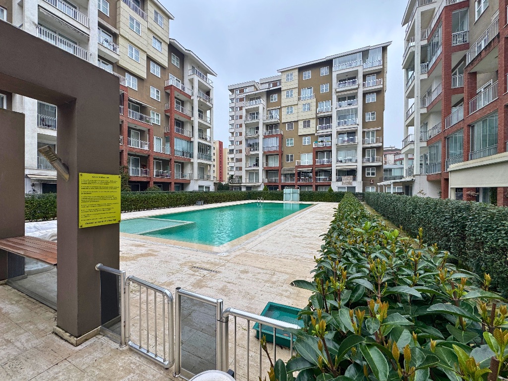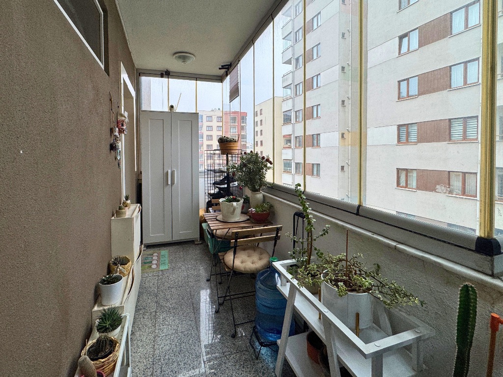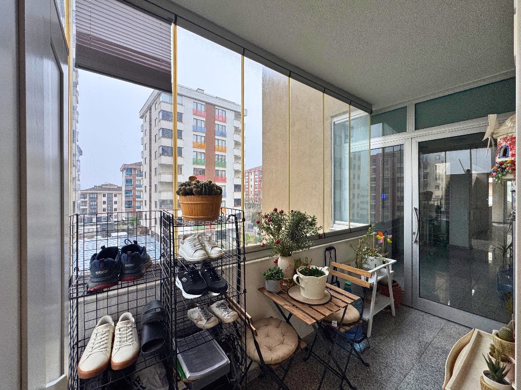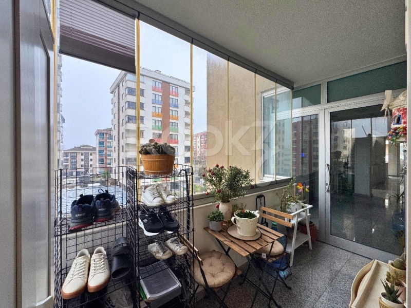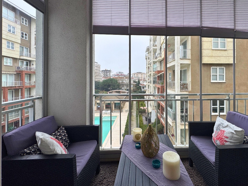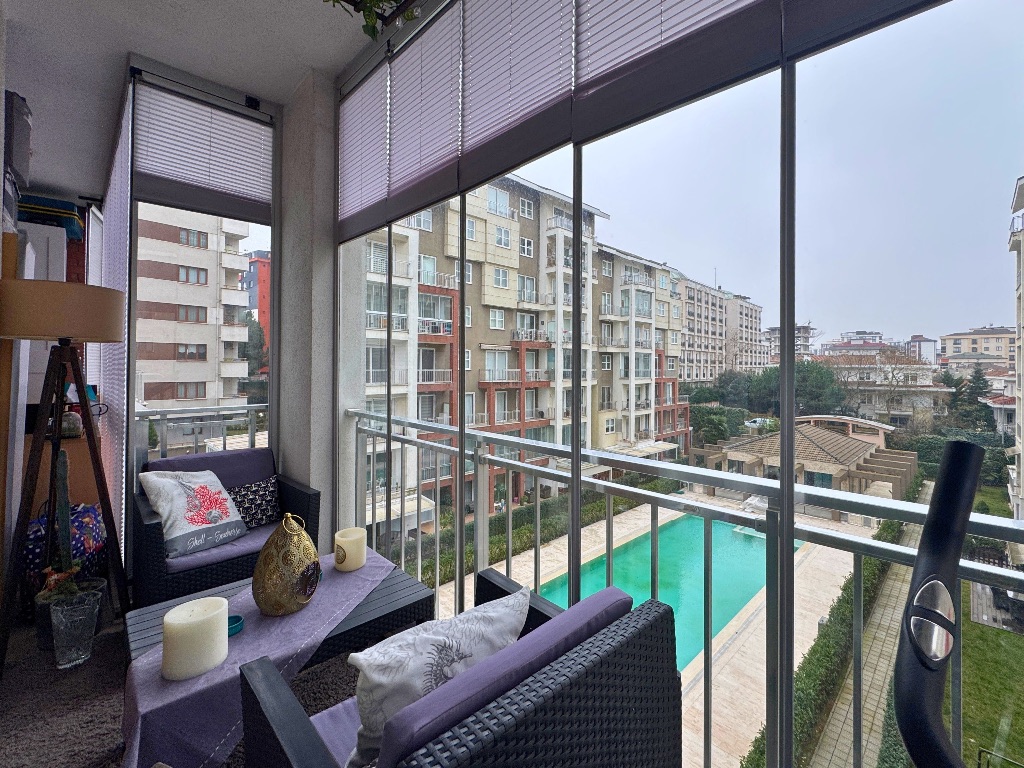 - Salondan çıkışlı, daire boyu uzanan, havuz ve peyzaj manzaralı cam balkonla kapatılmış geniş balkon