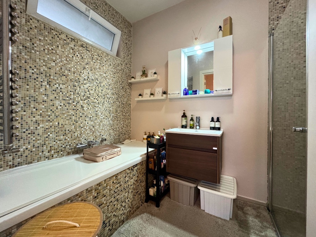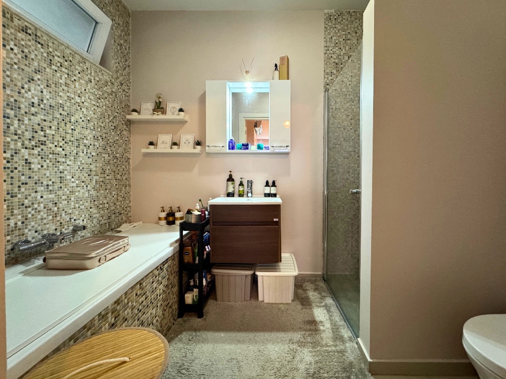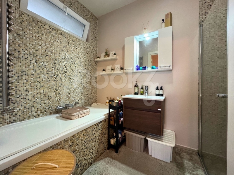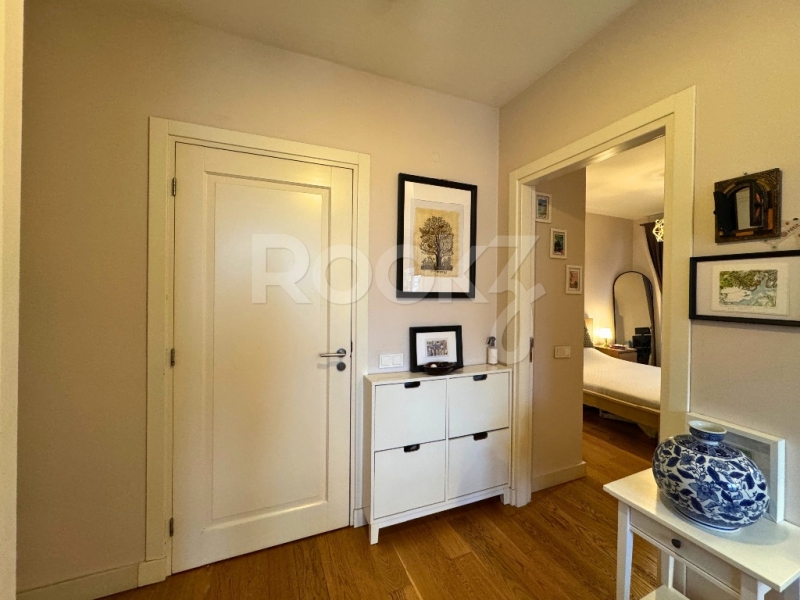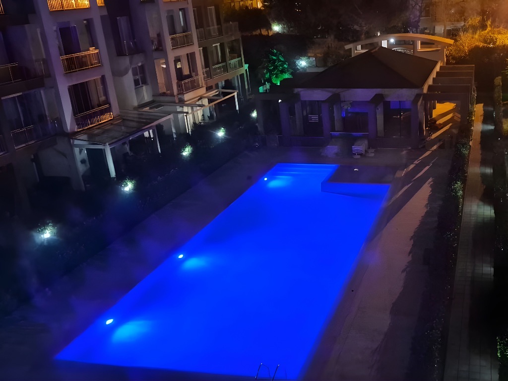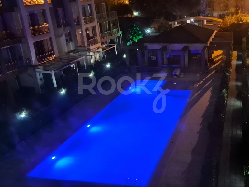 - Salondan çıkışlı, daire boyu uzanan, havuz ve peyzaj manzaralı cam balkonla kapatılmış geniş balkon